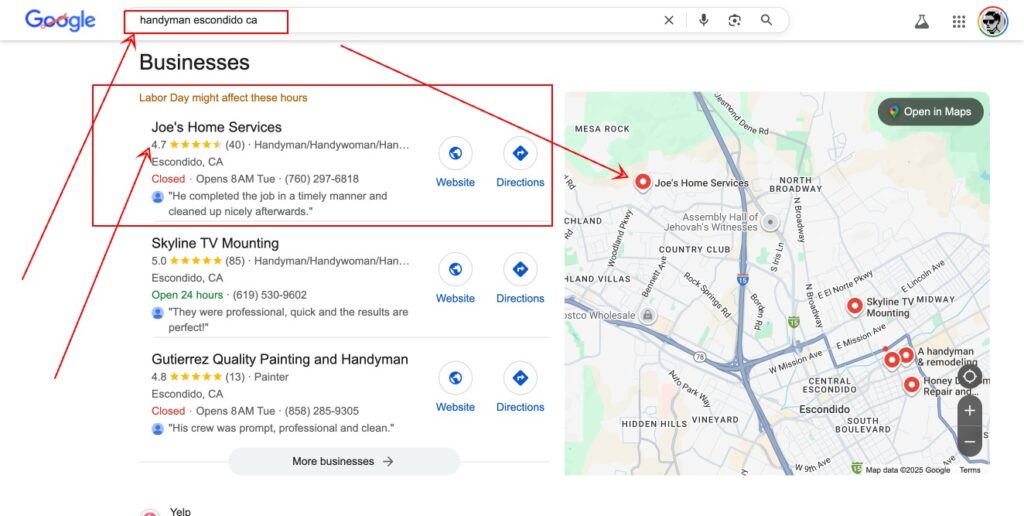 In a super competitive area like Escondido, Joe is going to be flooded with new business! Ranking #1 for handyman in an area like that is MONEY IN THE BANK! Let’s go IT team!!