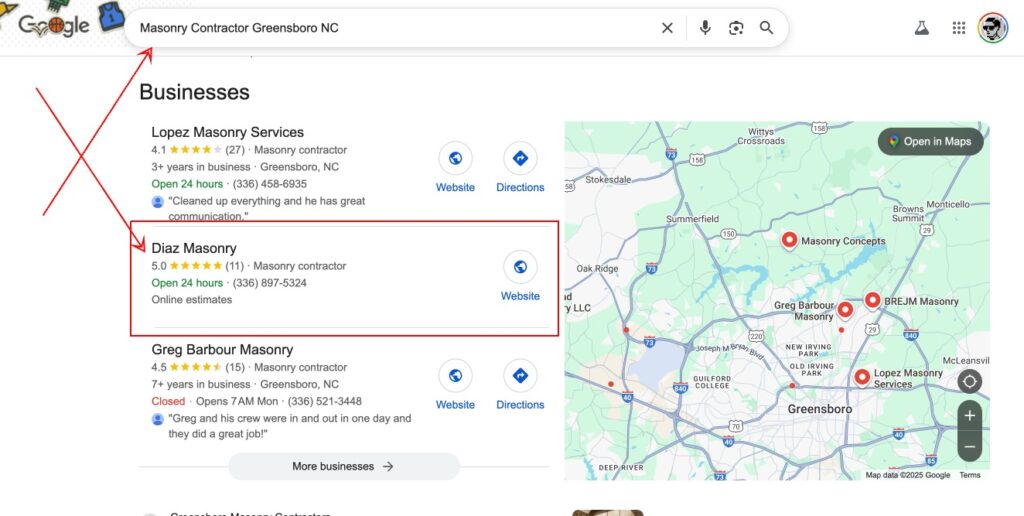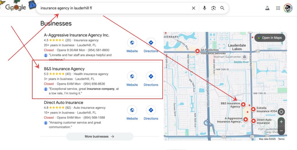 Well, fast forward just a few days and BOOM we took over the listing, got it reinstated, optimized it, got all the reviews back and the best part is: they are now ranking NUMBER ONE for all the services they provide! Talk about turning a frown upside down. Way to go IT and Customer Service teams!!!